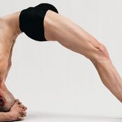 Tipp: Aus dem Kopfstand in Caturaṅga Daṇḍāsana zu springen, sollte nicht wie ein umfallender Baum wirken. Um den Übergang zu kontrollieren, senke zunächst die gestreckten Beine vor Dir ab, bis die Zehen dicht über dem Boden schweben. Von hier aus hebst Du die Beine mit etwas Schwung wieder nach oben – turnerisch ist das eine Felgbewegung. Dadurch hebt der Kopf leicht ab, Du kannst die Hände für Caturaṅga Daṇḍāsana umsetzen und kontrolliert landen.