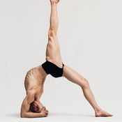 Tipp: Der Sprung aus dem Kopfstand in Caturaṅga Daṇḍāsana darf nicht wie ein Baumsturz passieren. Für Kontrolle senkst Du die gestreckten Beine erst nach vorne ab, bis die Zehen knapp über dem Boden schweben. Von dort schwingst Du die Beine mit leichtem Impuls wieder nach oben – gymnastisch eine Felgbewegung. Dadurch wird der Kopf kurz entlastet, Du kannst die Hände in Caturaṅga Daṇḍāsana positionieren und sauber, kontrolliert landen.