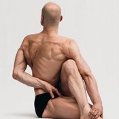 Falte ausatmend Dein linkes Bein in einen halben Lotus und platziere Deinen rechten Fuß auf der Außenseite des linken Knies. Atme ein, drehe Dich nach rechts und greife mit Deiner linken Hand Deinen rechten Fuß. Mit Deiner rechten Hand greife hinter dem Rücken und finde Halt in der linken Leiste. Verbleibe hier bis zur fünften Einatmung. Mit der fünften Ausatmung entfalte Deine Beine und setze Deine Hände auf dem Boden ab.