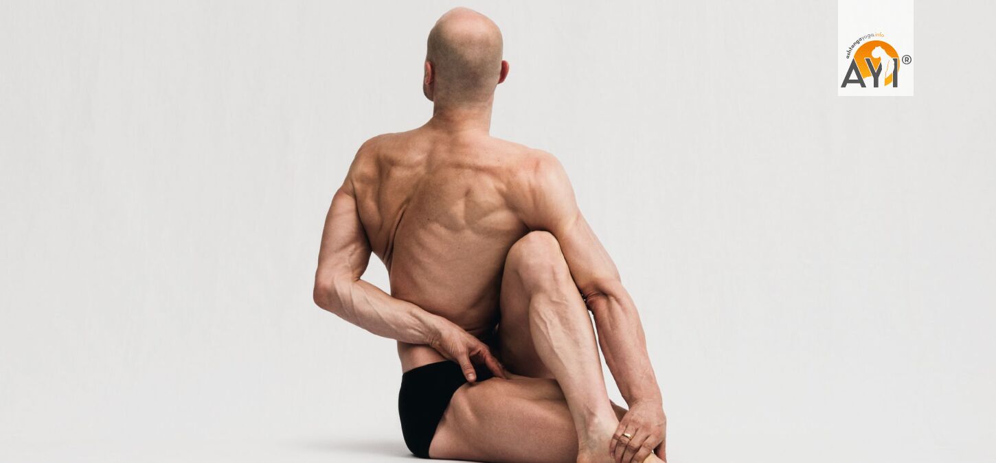 Wirkung: Pūrṇa Matsyendrāsana ist eine tiefe Rotation, die vor allem Brustwirbelsäule und Rippen mobilisiert und gleichzeitig Hüfte/Gesäß stabil arbeiten lässt. Gut angeleitet verbessert sie Rotationsfähigkeit, Aufrichtung und Atemraum – schlecht ausgeführt wird sie schnell zur „Zerrung aus dem unteren Rücken“, also: Rotation primär aus dem Brustkorb, Becken stabil.