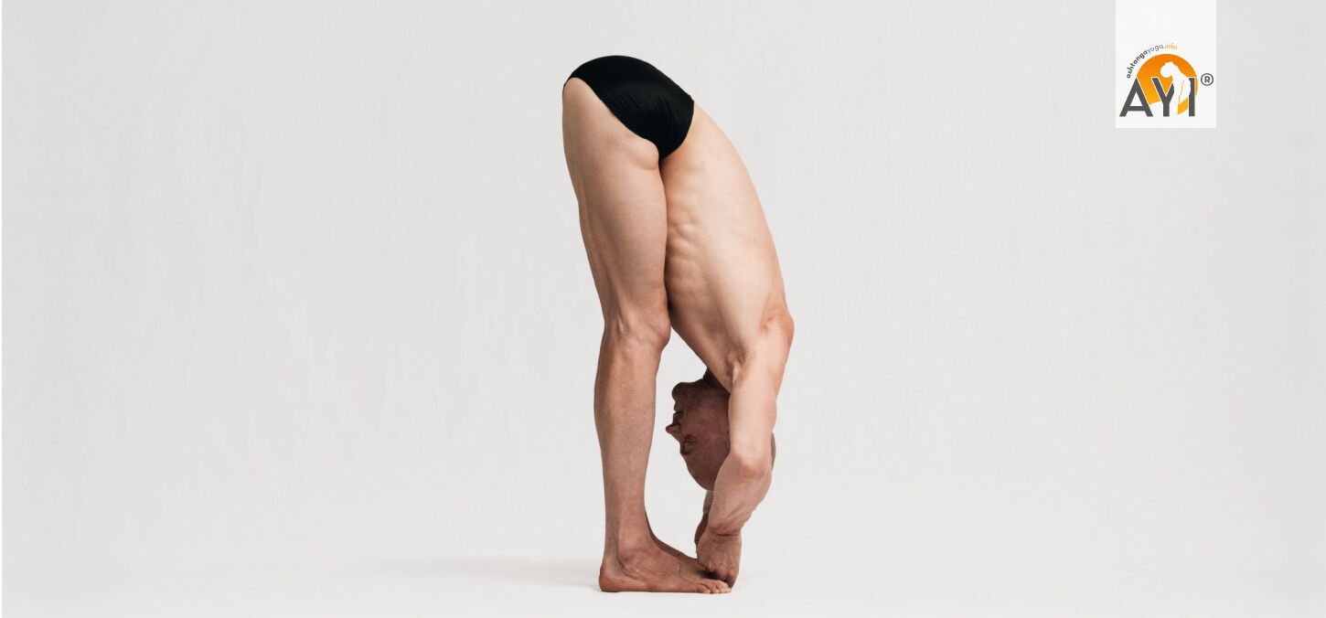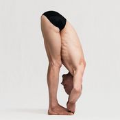 Wirkung: Als stehende Vorbeuge gibt die Haltung von Pādāṅguṣṭhāsana Deinem Becken viel Freiheit nach vorne zu kippen. So fällt es leicht, Länge in der Wirbelsäule zu bewahren und gleichzeitig die Beinrückseiten zu dehnen.