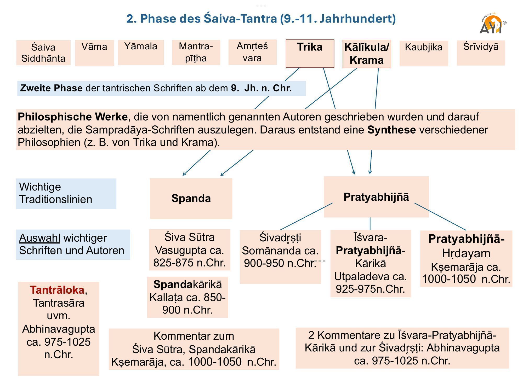 - Verschmolz später mit der Trika-Schule durch Abhinavaguptas Lehren.