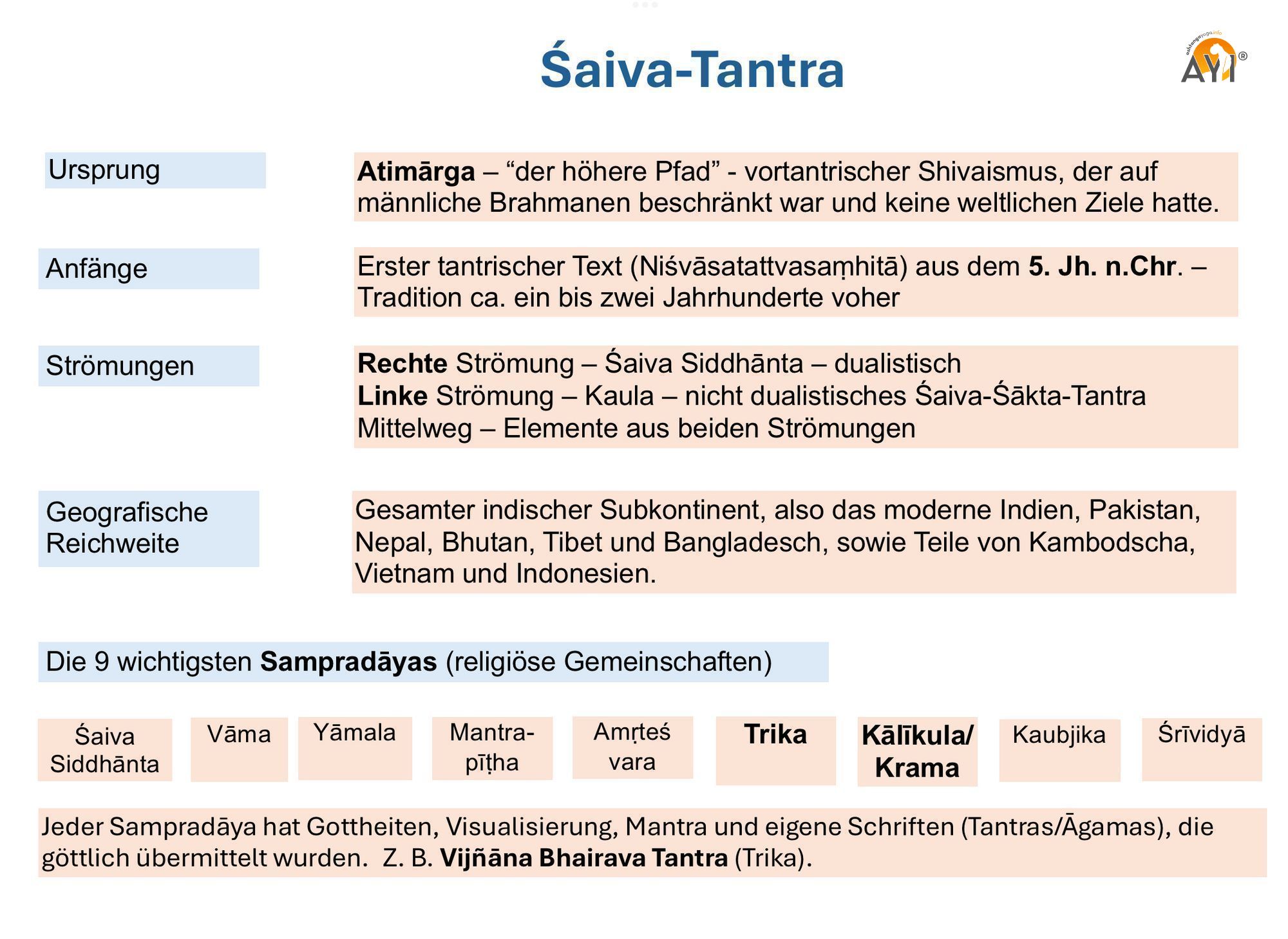 - Legt den Schwerpunkt auf tantrische Praxis und Kosmologie